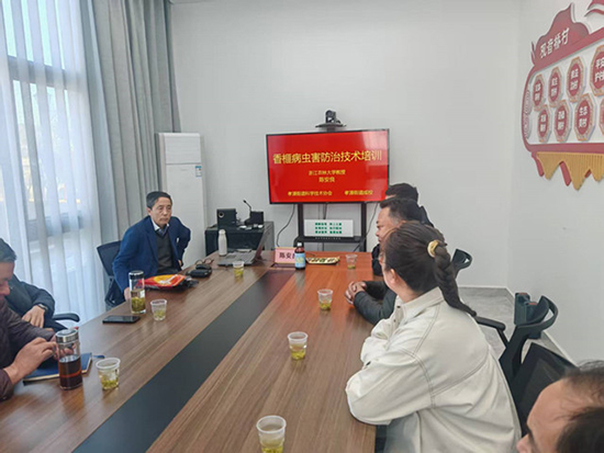 “為了今天的培訓(xùn)和實(shí)踐活動(dòng),我準(zhǔn)備已久。一是將我近三年來(lái)對(duì)香榧病蟲(chóng)害防治技術(shù)研究成果扎實(shí)落地并把這些技術(shù)教給今天來(lái)的骨干力量,二是到香榧林里去實(shí)地查看……”在觀音橋村文化禮堂一樓會(huì)議室里,來(lái)自浙江農(nóng)林大學(xué)林業(yè)與生物技術(shù)學(xué)院森林保護(hù)學(xué)科專家陳安良教授正和前來(lái)參加香榧種植技術(shù)的幾十位農(nóng)戶學(xué)員娓娓道來(lái),接著作了主題為《香榧病蟲(chóng)害防治技術(shù)培訓(xùn)》的講座,并不時(shí)地與參訓(xùn)學(xué)員們互動(dòng)交流。