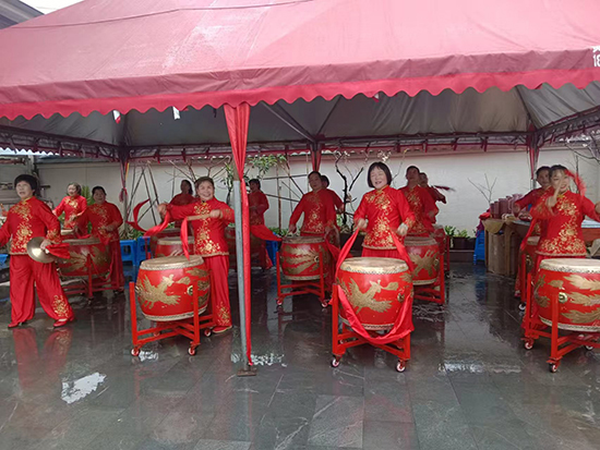 在安吉縣承辦的“湖州市全民終身學習周啟動儀式”上,“喜慶鑼鼓班”以其精湛的技藝和飽滿的熱情,向全市人民展示了鄉村文化的獨特魅力,贏得了現場觀眾的陣陣掌聲。在各類鄉鎮企業慶典活動中,鑼鼓班的表演成為必不可少的環節,為企業發展送上祝福,增添了喜慶與活力。而在農村婚慶活動里,喜慶的鑼鼓聲更是為新人的幸福時刻渲染出熱鬧的氣氛,成為鄉村婚禮獨特的風景線。每至鄉村春節晚會,鑼鼓班的登場總能將晚會推向高潮,給村民們帶來歡樂與溫暖。?