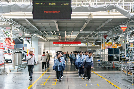在長城汽車平湖分公司的焊裝車間和總裝車間,學生們近距離觀察了自動化生產線的高效運作。一臺臺智能機器人精準完成焊接、裝配等工序,展現(xiàn)了平湖整車項目“14個月建成投產”的“長城速度”。企業(yè)負責人介紹,該項目是平湖首個百億級標桿產業(yè),主要生產哈弗品牌及新能源車型,年產達10萬輛,為長三角一體化發(fā)展注入強勁動力。
