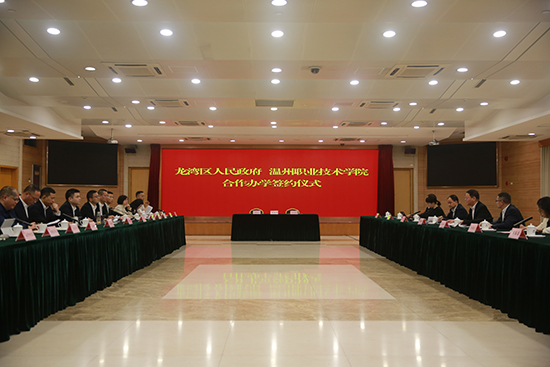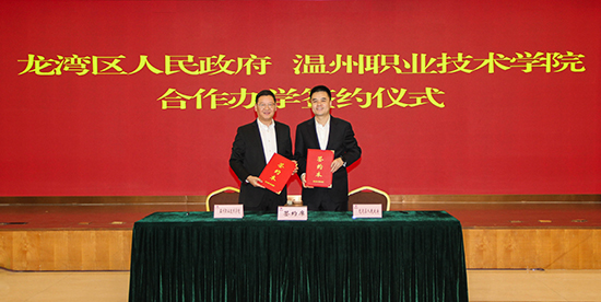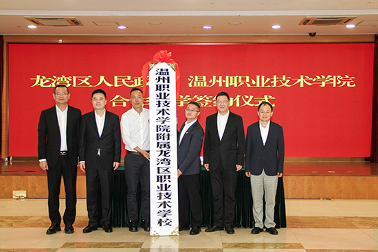 在與會領(lǐng)導(dǎo)的共同見證下,龍灣區(qū)區(qū)長夏禹槳與溫職院校長鄭信軍就合作建設(shè)溫州職業(yè)技術(shù)學(xué)院附屬龍灣區(qū)職業(yè)技術(shù)學(xué)校簽訂合作辦學(xué)協(xié)議,溫職院黨委委員劉海明給龍灣區(qū)職業(yè)技術(shù)學(xué)校校長鄭源賀授以“溫州職業(yè)技術(shù)學(xué)院附屬龍灣區(qū)職業(yè)技術(shù)學(xué)校”牌匾。