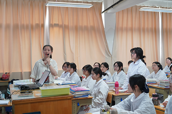 隨后,專家、老師們走進教室,觀摩了郁俏靜老師的心理健康輔導課《綠蕉成長記——考試焦慮團體輔導》、柴勝利老師的數學高三復習課《弦長問題》、俞佳帆老師的語文小說閱讀復習課《敘述視角與敘述人稱考點解析》、鐘美君老師的《考頻四維之觀前廳》、應捷老師的網店開設復習課《找數聯(lián)想》、舒碧穎老師的內科護理復習課《肝性腦病專項》6堂課,共研教學提升之道。