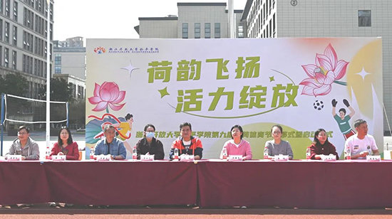 3月24日下午,浙江開(kāi)放大學(xué)臨平學(xué)院第九屆青荷體育節(jié)開(kāi)幕式暨啟動(dòng)儀式在學(xué)院操場(chǎng)隆重舉行。學(xué)院院長(zhǎng)沈琪、學(xué)院黨委書(shū)記邵曉舟、副院長(zhǎng)陳勝瑩、副院長(zhǎng)查文婷、副院長(zhǎng)唐瑛、政教處主任方建衛(wèi)、高一年級(jí)主任王海珍、高二年級(jí)主任章鶯、高三年級(jí)主任戴國(guó)華、繼教處副主任屠丹華出席活動(dòng)。高一、高二年級(jí)全體學(xué)生、高三年級(jí)3+2班學(xué)生及各班家長(zhǎng)代表共同參與,開(kāi)啟了一場(chǎng)充滿趣味與活力的體育盛宴。