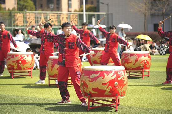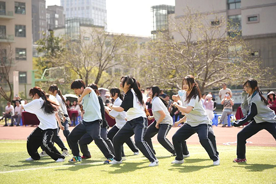 精彩的體育文化主題展演將現(xiàn)場(chǎng)氣氛推向高潮。青荷鼓隊(duì)帶來(lái)了氣勢(shì)磅礴的表演,激昂的鼓聲如陣陣春雷,展現(xiàn)出同學(xué)們蓬勃的朝氣與活力;校健美操隊(duì)的隊(duì)員們則以優(yōu)美的身姿、靈動(dòng)的舞步,展示了青春的魅力與風(fēng)采,贏得了現(xiàn)場(chǎng)觀眾的陣陣掌聲和歡呼聲。
