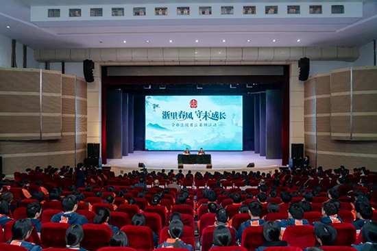 3月28日,湖州市中級人民法院黨組書記、院長肖國耀走進浙江省湖州藝術與設計學校,以“法治副校長”身份為500余名學生講授專題法治教育課。湖州市教育局黨委書記、局長陳建良參加。