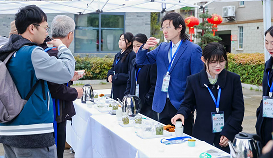 斗茶交流活動組協助評審流程,近距離學習專家對60余種西湖龍井茶樣的品鑒技巧,并參與臺灣高山烏龍茶的品飲服務,深入體會兩岸茶藝的異同。