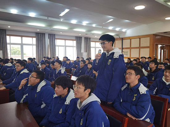 講座開始前,余闖校長以“工貿班是否存在同年同月同日生”的趣味設問破冰,在“你們就是浙江智造的隱形冠軍鍛造者”的鏗鏘論斷中,妙趣橫生的互動迅速點燃全場熱情。通過“八八戰略引領”“青年力量破局”“拓展職教格局”“時代共振未來”四重奏章,運用動態數據可視化、產教融合案例庫、職教改革路線圖,全景解碼浙江在戰略指引下的產業躍遷,為同學們全景呈現了浙江在“八八戰略”指引下的精彩蝶變、浙江在立足新定位擔負新使命中的改革實踐和取得的一系列標志性成果,并提及學校學生全國、省、市、區、校級職業能力大賽取得的豐碩成果,呼吁在座學生能夠在榜樣中汲取力量,用實踐突破重塑成長邊界。