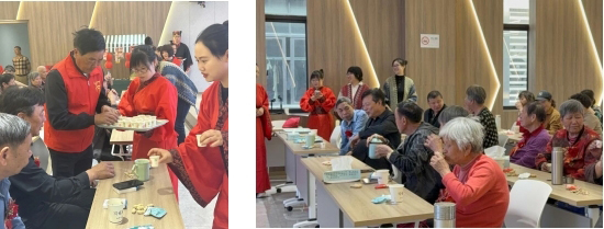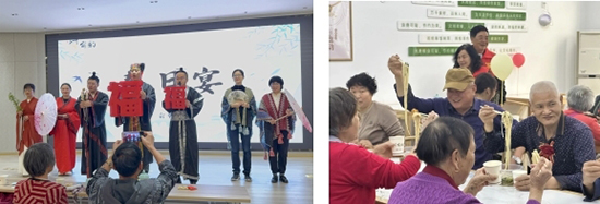 活動尾聲,長者們圍坐品嘗社區志愿者手工制作的長壽面,現場特別設置的“春日漢風打卡點”前,老人們紛紛駐足拍照留念。社工小孔表示:“我們希望通過這種‘學習+體驗'的模式,讓傳統文化融入長者生活,讓他們在活動中收獲知識,感受到社區的溫暖陪伴。”