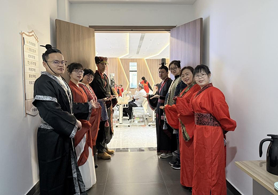 活動伊始,禮儀老師身著漢服,帶領長者們完成“祭酒禮”漢風祈福儀式。82歲的張奶奶捧著米酒感嘆:“第一次知道米酒在漢代叫'醴',這個‘共飲長壽酒’的儀式特別有講究,既莊重又溫暖。”據“慧齡空間”負責人介紹,為籌備此次活動,社區特別邀請非遺傳承人開設了“漢文化研習課”,讓老人們了解漢代的服飾禮儀和飲食文化等等。