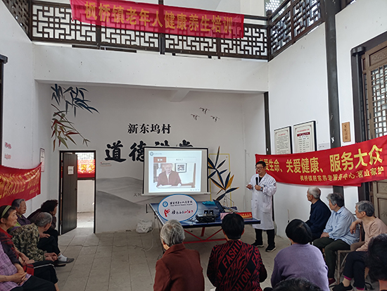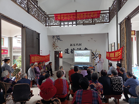 3月27日下午,諸暨市楓橋鎮社區教育學校邀請諸暨市第二人民醫院內科主任駱一舟、眼科主任醫師陳旭鋒來到楓橋鎮新東塢村的文化禮堂,為老年人作養生保健講座。