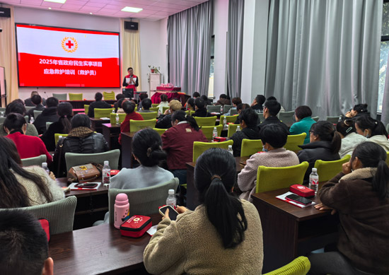 為提升轄區居民應對突發事件的自救互救能力,夯實基層應急救護力量,近日,蘭亭街道在蘭亭成人文化技術學校舉辦了一場紅十字應急救護考證專項培訓活動。活動特邀紹興第二醫院蘭亭分院王寶峰醫生擔任主講,吸引了50余名村居干部、網格員、志愿者等社區重點崗位人員參與。