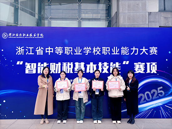 近日,2025年浙江省中等職業學校職業能力大賽“智能財稅基本技能”賽項在浙江省經濟職業技術學院舉行。學校財會專業團隊22會計1班李依婷、范秋雨、洪斯涵、裘樂妍等4名學生,與來自全省各地市的30組選手同場競技,經過三場激烈比拼最終榮獲團隊三等獎。