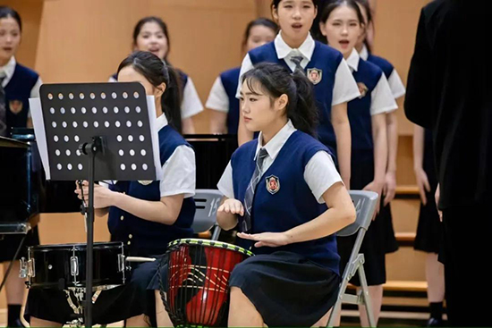 為保障活動順利開展,學校組建了師生志愿者團隊,涵蓋引導、舞臺、后勤等流程。此外,醫(yī)療、安保等應急服務全程待命,確保現(xiàn)場安全有序。展演現(xiàn)場,各校參賽隊伍以精湛的技藝和飽滿的熱情呈現(xiàn)了一臺傳統(tǒng)與現(xiàn)代碰撞、東學與西韻交織的精彩節(jié)目,展現(xiàn)了新時代青少年蓬勃的藝術創(chuàng)造力與審美素養(yǎng)。