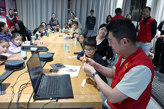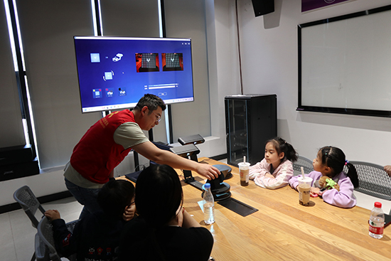 12名小朋友被分成2組,他們現場觀摩3D打印進程,其余4位黨員教師志愿者和4名學生志愿者也積極參與活動。這些黨員教師個個都是高技能人才,如浙江工匠褚佳祺、電工電子高級講師胡雙雙、機械高級講師郝婷婷和勵萍老師。有的志愿者負責向小朋友們進行一對一的現場答疑,有的志愿者現場給小朋友發放3D打印禮物。