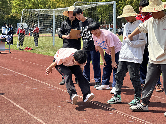 團體賽環節中,“兩人三足”“立定跳遠接力” 等經典項目將賽事推向白熱化階段。各班級代表隊以行云流水般的默契配合,在速度與策略的博弈中突破自我。觀賽區此起彼伏的助威聲化作青春的號角,見證著新時代青年用團結協作書寫的奮斗篇章。