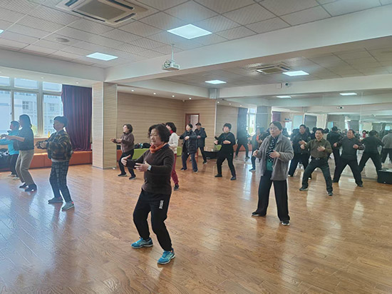 太極拳不僅強身健體,還弘揚了中華傳統文化。袁老師從一招一式基本功教起,傳授太極拳動作要領,耐心地對學員的手型、手法、步型、步法等進行糾正指導。學員們學習熱情高漲,聽講認真,跟著老師一招一式地揣摩、練習。