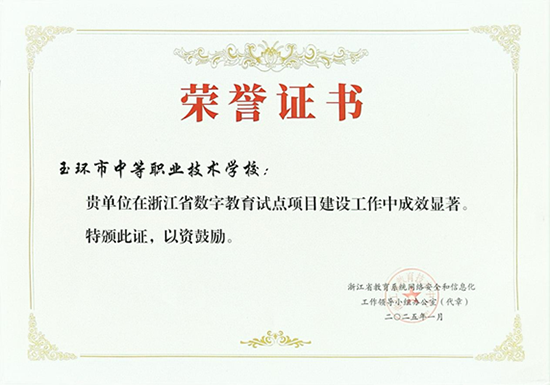 近日,浙江省教育廳公布數(shù)字教育試點(diǎn)驗(yàn)收結(jié)果,玉環(huán)市中等職業(yè)技術(shù)學(xué)校在“浙江省數(shù)字教育試點(diǎn)——職業(yè)教育信息化標(biāo)桿校”建設(shè)工作中成效顯著,順利通過驗(yàn)收。