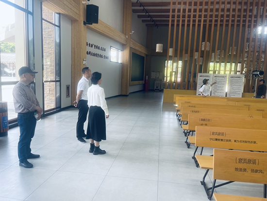 抵達楓源村后,黨員教師們在講解員的帶領下走進村史陳列館內,著重介紹黨建工作、矛盾調解、鄉村文化建設等方面的寶貴經驗。黨員教師對“問議辦評 合力治村”的監督體制、“三上三下 民主治村”的決策機制、“鄉里事務自治 鄉村秩序法治、鄉風文明德治”的鄉村治理體系深有體會,結合教育工作實際,思考如何將黨建與教育服務相結合、如何融入品德培養和社會認知教育、如何注重激發學生們的自主意識和團隊合作精神。楓源村在黨組織的堅強領導下,通過創新“三治融合”基層社會治理模式,充分發揮村民自治作用,走出了一條獨具特色的鄉村振興之路。