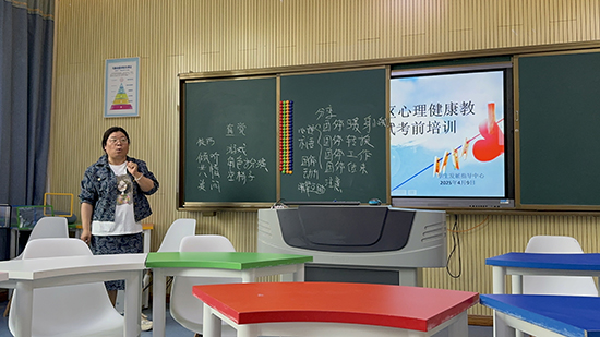 學以致用:學員收獲顯著。參加考前培訓的教師積極參與到心理活動課設計中來,羅玉老師成果展示,在小組活動中設計出“考試焦慮緩解”主題特色心理課活動方案。羅玉老師表示:“培訓讓我意識到心理健康教育不是簡單的說教,而是需要科學方法和共情能力。尤其是‘積極心理學在班級管理中的應用’這一課,為我打開了新思路。”