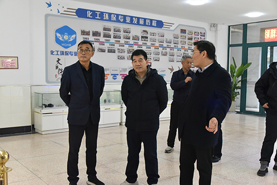 在匯報交流環節,賀建誼書記詳細匯報了學校的辦學情況,化工專業部部長何駿也針對專業建設情況進行了深入分享,讓在場領導對學校的現狀和發展方向有了全面的了解。
