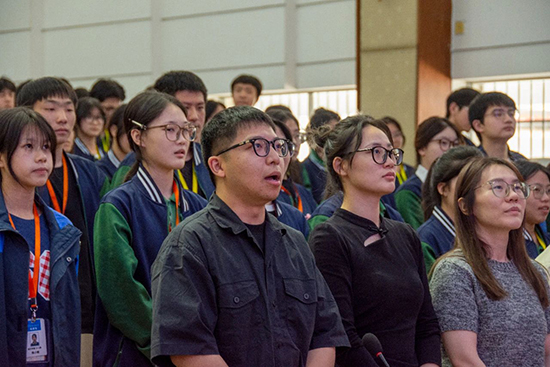 會議最后全體起立奏唱中國共產主義青年團團歌。所有人挺直脊梁,目光如炬,滿懷熱忱與自豪,激勵著在場的每一位青年學子,以更加飽滿的熱情、更加昂揚的斗志,投身到未來的工作中,讓青春在為同學服務、為學校發展的征程中綻放絢麗之花。(徐亮)