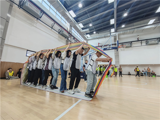 拔河比賽、洪流滾滾、珠行萬里、毛毛蟲競速、旱地冰壺、瘋狂運球……比賽現場既緊張激烈,又妙趣橫生,每項運動不僅考驗參賽選手的運動協調性,更要求隊員之間的配合與默契。他們齊心協力,努力拼搏,充滿歡聲笑語的賽場,充分展現出了新一代青年的青春活力和團隊精神。大家也在輕松愉悅的氛圍中釋放了壓力,享受到運動的快樂。“這次活動豐富了我們的生活,也增進大家的友誼與團隊合作精神,我們感覺非常好。”團員黃丹說。