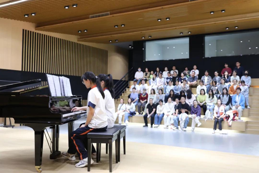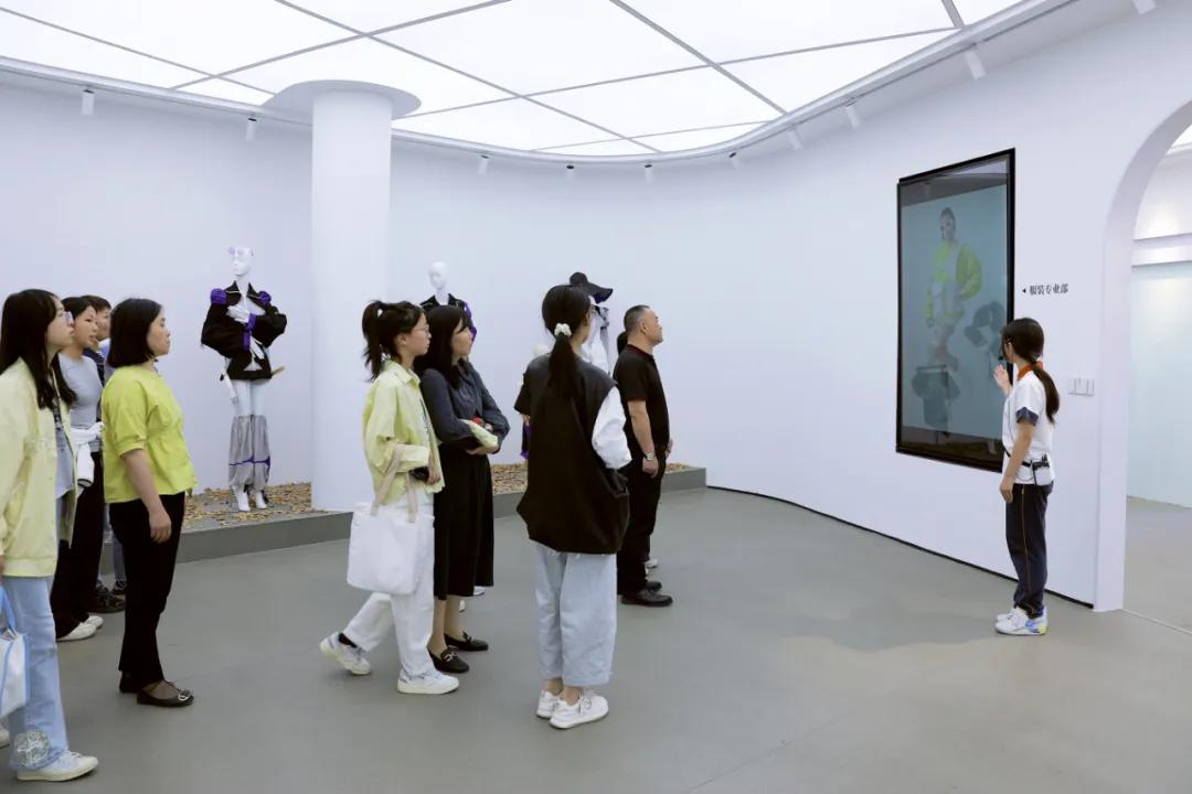 隨后的校園探訪環(huán)節(jié),家長(zhǎng)與學(xué)生在小導(dǎo)游的引導(dǎo)下,先后參觀美育作品展廳、木棉工作室、一爾皮具工坊、匠心坊及箱創(chuàng)空間,并沉浸式體驗(yàn)了學(xué)前教育專業(yè)的四手聯(lián)彈、歌舞展示及航空服務(wù)禮儀操。