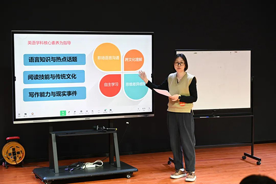 從單選題的經(jīng)典重構(gòu)到閱讀題的跨學(xué)科選材,再到寫(xiě)作題的生活化設(shè)計(jì),選手們的命題作品緊扣學(xué)科核心素養(yǎng)及教學(xué)評(píng)一致性,又充滿智慧與巧思。命題選材熱詞頻現(xiàn):人工智能,環(huán)境保護(hù),一帶一路。一張A4紙?jiān)嚲砜梢匀菹抡麄€(gè)世界。而寫(xiě)作題可以化身為給未來(lái)自己的一封信,也可以是體重管理的自律倡議書(shū)。說(shuō)題環(huán)節(jié)更是亮點(diǎn)頻出,從學(xué)情適配到測(cè)評(píng)維度,教師們金句不斷:“題目不是終點(diǎn),而是思維的起點(diǎn)”“好的命題要像一座橋,連接知識(shí)與生活”。