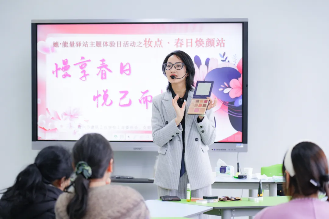 在“妝點(diǎn)?春日煥顏站”活動(dòng)中,中國(guó)形象設(shè)計(jì)協(xié)會(huì)形象禮儀講師楊麗萍的到來(lái)讓女教師們興奮不已。平日里,老師們一心撲在教學(xué)上,很少有時(shí)間打扮自己。此刻,面對(duì)專(zhuān)業(yè)美妝講師,大家滿(mǎn)是好奇與期待,像一群渴望變美的學(xué)生。講師從打底、遮瑕,打造清透底妝,到通過(guò)巧妙暈染勾勒精致眼妝,再到挑選合適口紅提升氣色,一步一步的為老師們講解并演示。還貼心分享了三分鐘日常妝速成法,讓女教師們?cè)诿β登宄恳材苎杆贌òl(fā)光彩。隨后的百變絲巾系法,更是讓大家眼前一亮,原本普通的絲巾,在講師手中瞬間“活”了起來(lái),女教師們認(rèn)真聽(tīng)講的同時(shí),早已迫不及待上手實(shí)踐,在歡聲笑語(yǔ)中,大家逐漸掌握了技巧,看著鏡子里更加自信美麗的自己,笑容愈發(fā)燦爛。