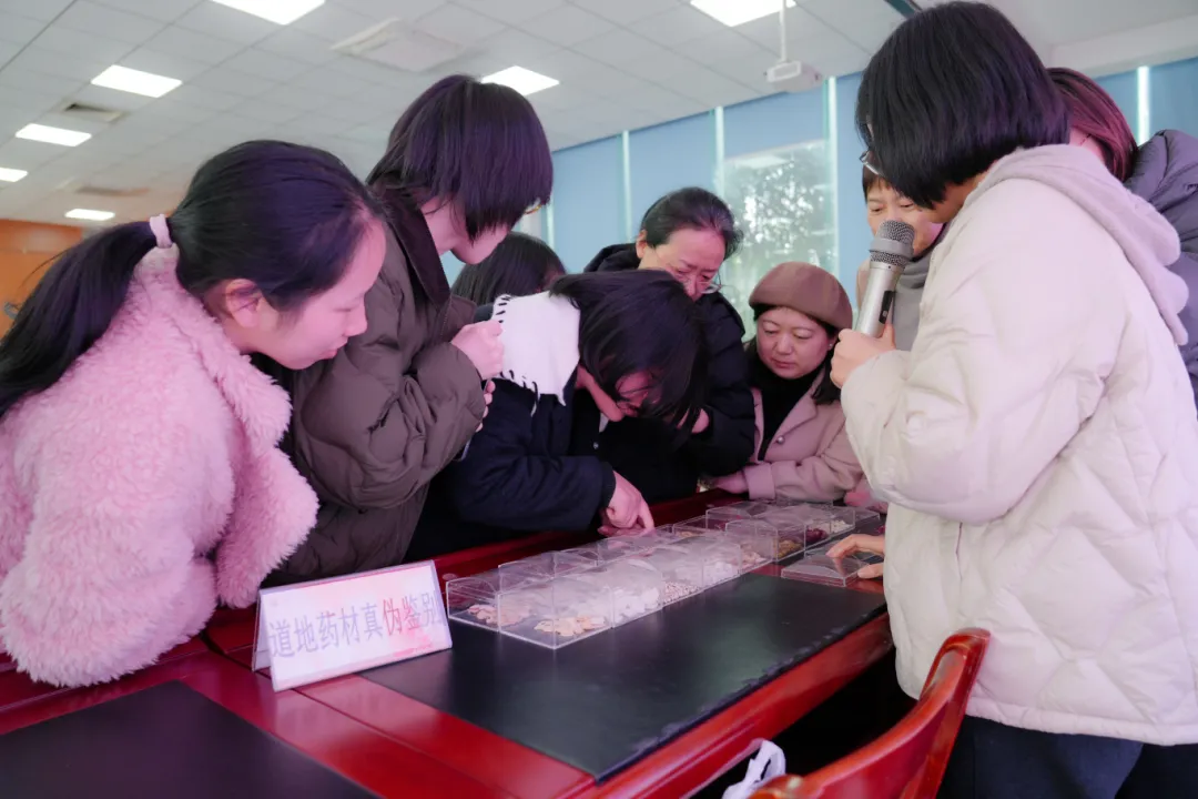 而第二個(gè)環(huán)節(jié)的藥材真?zhèn)舞b別競(jìng)賽更是瞬間點(diǎn)燃現(xiàn)場(chǎng)氣氛,女教師們憑借剛從講座中學(xué)到的知識(shí)及自身的生活經(jīng)驗(yàn),目光專(zhuān)注地審視著各類(lèi)藥材樣本,積極搶答,在你來(lái)我往的熱烈互動(dòng)中,真正學(xué)到了實(shí)用的養(yǎng)生知識(shí)。