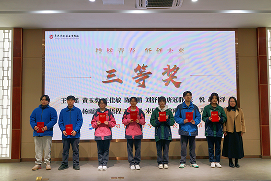 接著進行的是市技能節表彰環節。王巧平、阮雪琴和范曉春三位領導分別向獲得三等獎、二等獎和一等獎的學生頒發了獎狀,對他們的努力和成就給予了肯定。這些榮譽不僅是對學生個人能力的認可,也是對他們團隊合作精神的贊揚。