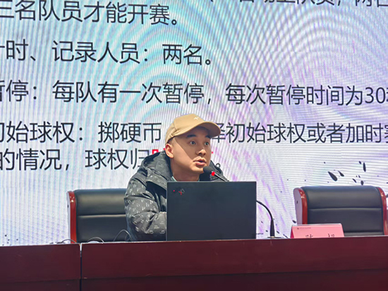 隨后,陳超老師為全體參賽隊員和裁判員進(jìn)行了詳細(xì)的規(guī)則解讀和培訓(xùn)。陳超老師結(jié)合自身豐富的執(zhí)裁經(jīng)驗,細(xì)致入微地講解了籃球比賽規(guī)則、裁判手勢以及注意事項,并針對同學(xué)們?nèi)菀壮霈F(xiàn)的犯規(guī)動作進(jìn)行了重點講解和示范。陳老師對裁判員提出了嚴(yán)格要求,務(wù)必做到公平對待每一支隊伍、公正吹響每一聲哨音;同時,也殷切期望參賽隊員們能夠始終秉持尊重對手、尊重裁判的體育精神。培訓(xùn)期間,同學(xué)們?nèi)褙炞ⅲe極互動。