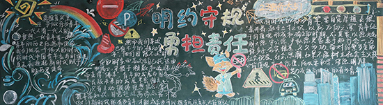 妙筆繪板展風(fēng)采,規(guī)則擔(dān)當(dāng)入心間。各院系按22級、23級、24級三個年級,分別以“法制學(xué)習(xí) 知法守法”“明約守規(guī) 勇?lián)?zé)任”“交通安全 文明出行”為主題,開展黑板報評比展示活動。各班級積極響應(yīng),學(xué)生充分發(fā)揮創(chuàng)造力,以斑斕色彩與工整文字,將規(guī)則意識、擔(dān)當(dāng)精神融入板報創(chuàng)作。
