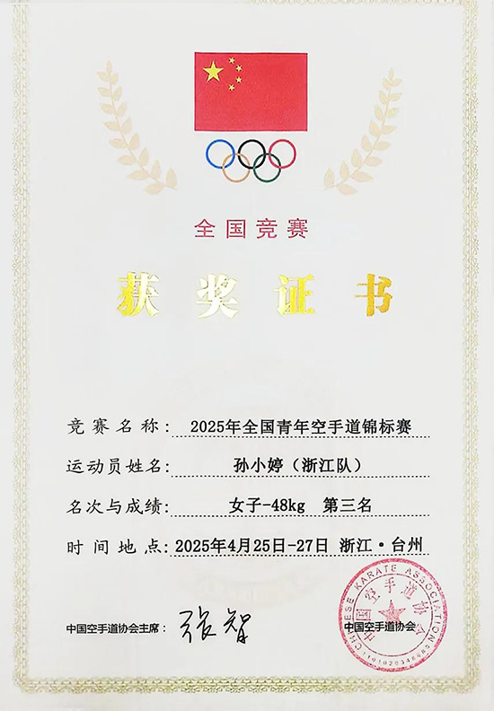 4月27日,由中國空手道協會主辦的2025年全國青年空手道錦標賽在浙江臺州椒江區體育館圓滿收官。
