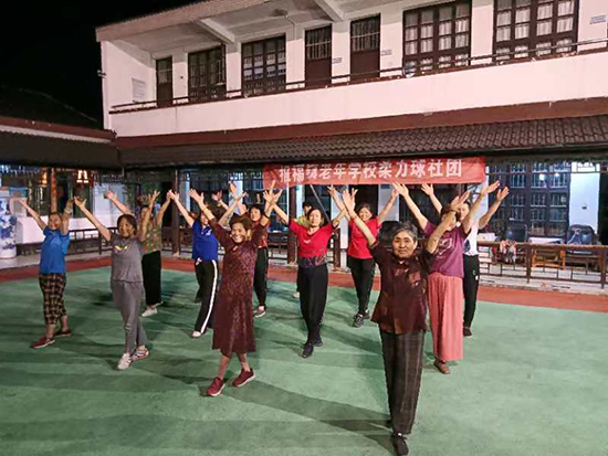 夜幕下的廣場燈光璀璨,學員們手持彩球,跟隨洪老師的口令揮灑汗水。柔力球運動柔和連貫的動作與輕快的音樂相融,既鍛煉了身體協調性,又展現了靈動舒展的姿態。活動現場氣氛熱烈,既有中年學員專注揣摩動作細節,也有老年朋友興致勃勃地交流切磋。不少參與者表示:“白天忙農活,晚上能學新技能,既能強身健體,又能認識新朋友,這樣的活動真是太貼心了!”