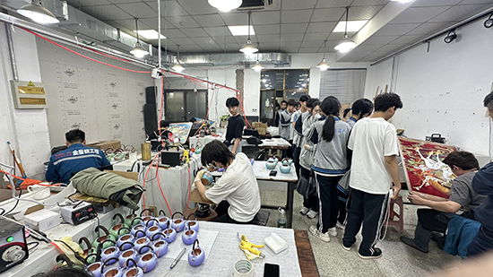 浙江理工大學(xué)藝術(shù)學(xué)院的T臺(tái)秀與畢業(yè)設(shè)計(jì)展呈現(xiàn)當(dāng)代設(shè)計(jì)活力,中華衣時(shí)尚藝術(shù)館的云肩、龍袍等非遺珍品則訴說(shuō)傳統(tǒng)工藝精髓。王逸塵老師的《絲廉》微課堂,以一根蠶絲串聯(lián)起文化傳承與設(shè)計(jì)創(chuàng)新的思考。在朱炳仁銅藝車間,熔鑄、鏨刻等非遺技藝的現(xiàn)場(chǎng)展演,讓同學(xué)們驚嘆“銅器會(huì)講故事”的匠心魔法。