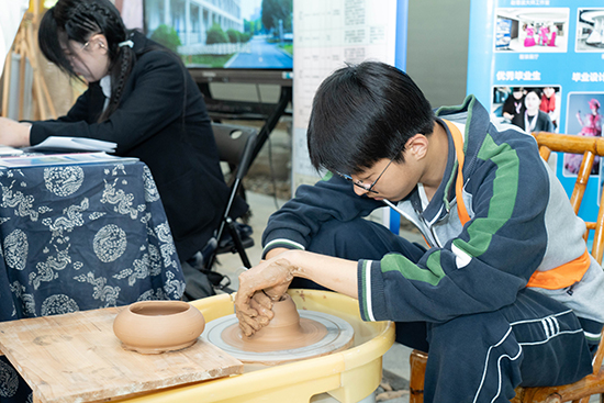 時尚藝術系精心勾勒出一片高雅的藝術天地,展示了陶泥制作工藝、石畫繪畫藝術、水彩畫優秀作品以及羽絨服優秀設計作品,品類豐富,藝韻十足,打造了高品質的藝術氛圍。