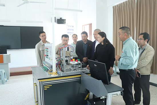 在聞濤樓(電子實訓樓),調研組實地考察了學校“產教融合、工學結合”的辦學實踐基地。電子電器應用與維修專業的學生們正在流水線生產實訓車間進行實操訓練,他們嫻熟的設備調試技能充分展現了學校“做中學、學中做”的教學特色。在物聯網理實一體化實訓室和1+X可編程控制器實訓室,調研組詳細詢問了專業建設與產業發展對接情況,對學校“課證融通”的人才培養模式給予了高度評價。