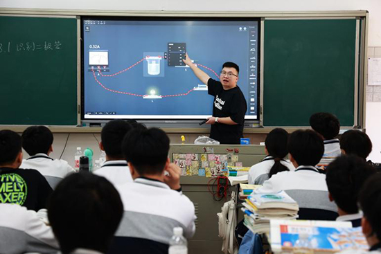 吳逸愷老師的《識(shí)別二極管》,旨在幫助學(xué)生認(rèn)識(shí)半導(dǎo)體材料的導(dǎo)電特性,會(huì)識(shí)別二極管的外形、圖形符號(hào)和二極管的極性。課堂借助動(dòng)畫演示抽象概念,采用虛實(shí)結(jié)合教學(xué)場景,培養(yǎng)了學(xué)生創(chuàng)新意識(shí)與團(tuán)隊(duì)協(xié)作能力。學(xué)生在游戲化任務(wù)中組隊(duì)攻關(guān),既感受了電子技術(shù)魅力,又激發(fā)了對(duì)智能科技探索的熱情。