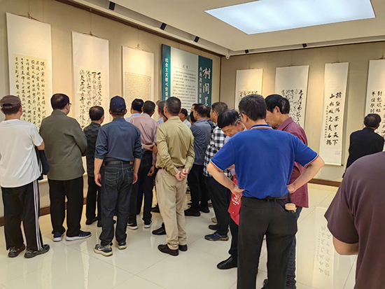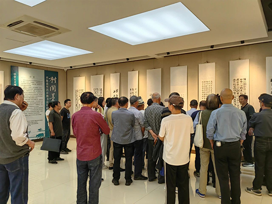 諸暨市書法家協(xié)會副主席邱金國主持,諸暨市文學(xué)藝術(shù)界聯(lián)合會副主席、諸暨市書法家協(xié)會主席楊曙致辭,馬劍鎮(zhèn)書畫院徐曉代表書法村發(fā)言,諸暨市書法家協(xié)會副秘書長錢鴻波帶領(lǐng)大家參觀,并進(jìn)行作品點(diǎn)評。展品以農(nóng)耕文明為底色,通過“以鋤為筆,以地為紙”的創(chuàng)作實(shí)踐,生動詮釋鄉(xiāng)村振興戰(zhàn)略下的文化新貌。50多件不同風(fēng)格的展品,既有雄渾質(zhì)樸的田壟氣象,也有清雅雋永的文人風(fēng)骨,全方位呈現(xiàn)共同富裕征程中的文化力量。以文養(yǎng)性,共繪長卷。鄉(xiāng)村文化追求,躍然紙上;群眾審美趣向,精彩紛呈。有東白湖煙雨的水墨交融;有五泄山飛瀑的潑墨寫意。也有楓溪水的槳花頓生筆下波濤;香榧林的枝干化為線條骨感。宣紙上躍動的是鄉(xiāng)土迭代的符號,是心靈的升華。鄉(xiāng)村文化特色,無論樸拙還是清新,共同訴說著一個道理,既要豐衣足食,也奢望精氣神的灑脫。墨華作舟,勇毅前行,文化是一切可持續(xù)發(fā)展的心源。培育文化社群,孕育文明搖籃,諸暨文化人,不忘使命。鄉(xiāng)村墨香跨越城市展廳,走進(jìn)尋常巷陌,閃耀熒屏天地。讓鄉(xiāng)村振興的藍(lán)圖,氣韻生動;讓共富的腳步,歷久彌新。搭建城鄉(xiāng)文化對話平臺,推動全民藝術(shù)普及,為“三賢故里”的文化傳承與美麗鄉(xiāng)村建設(shè)注入新動能。展覽到2025年5月24日結(jié)束。
