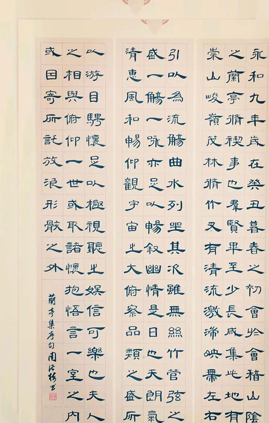 新學期伊始,書法班章高鈞老師宣布本學期我們將學寫王羲之《蘭亭序》時,教室里頓時響起一片驚嘆。老學員們聽聞后很開心,有一種迫切想提筆書寫的心情。但像我們這種連毛筆都還沒摸穩的“菜鳥”也能上手學寫《蘭亭序》嗎?   “能”。章老師給出了肯定的答復,“蘭亭序是書法學習者的必修范本,這學期大家一起慢慢寫,會寫的、不會寫的,都一個字一個字認真地學”。