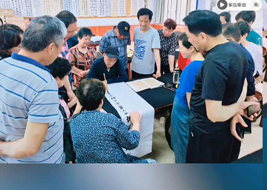 每周三上午的書法課成了大家最期待的時光。學員們都會早早來到學校,交作業、討論筆法、相約購買新的紙和筆……,教室里洋溢著一種年輕人難以企及的專注與歡樂。為了臨摹好一張作業,有人寫三米長的卷,有人廢寢忘食地練習,有人甚至半夜起身揮毫……,班長大老虎說:“我們不是在和古人比書法,而是在學習如何與時間相處。”在學員們用心書寫的筆觸里,是王羲之筆下“快然自足,不知老之將至”的灑脫精神。