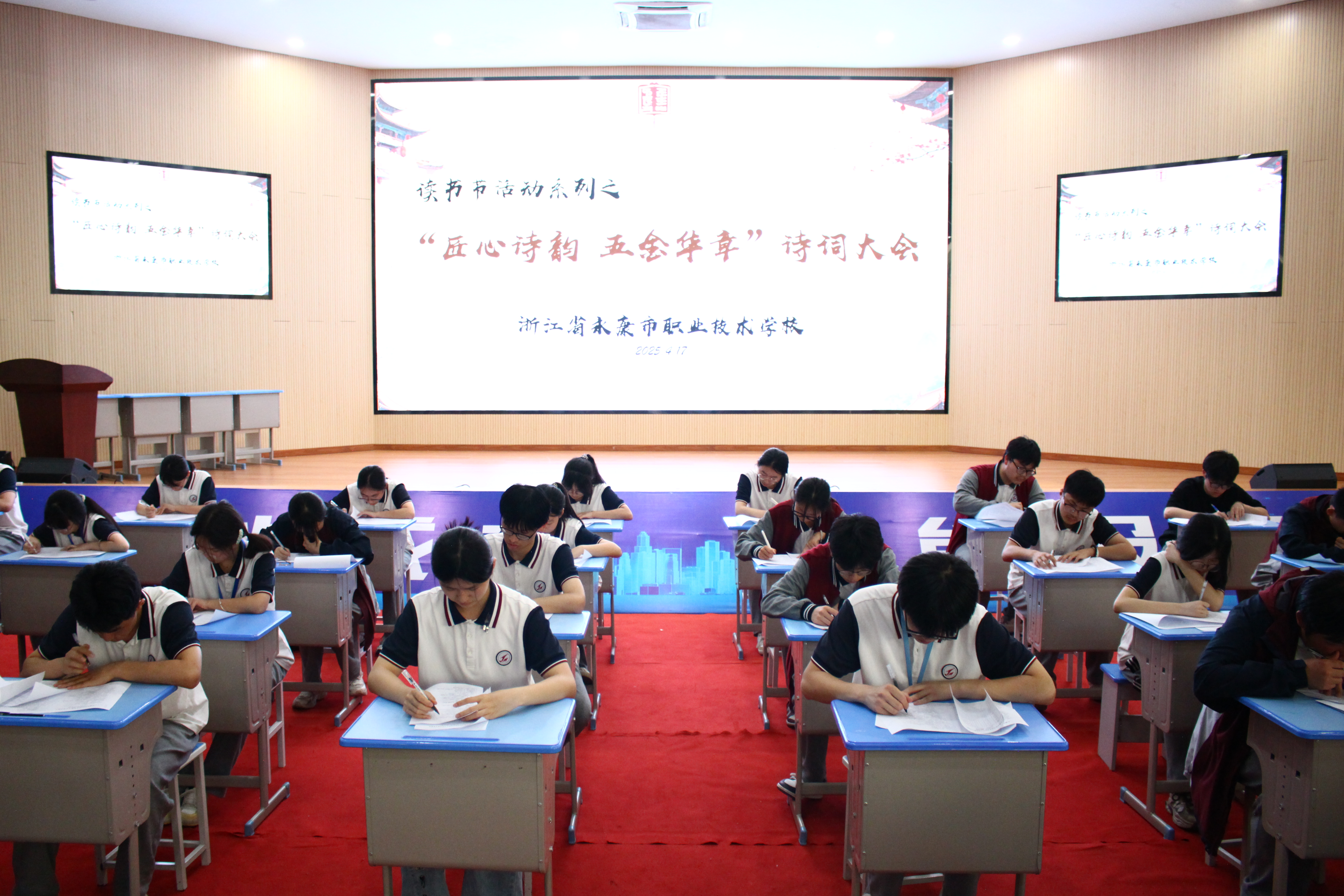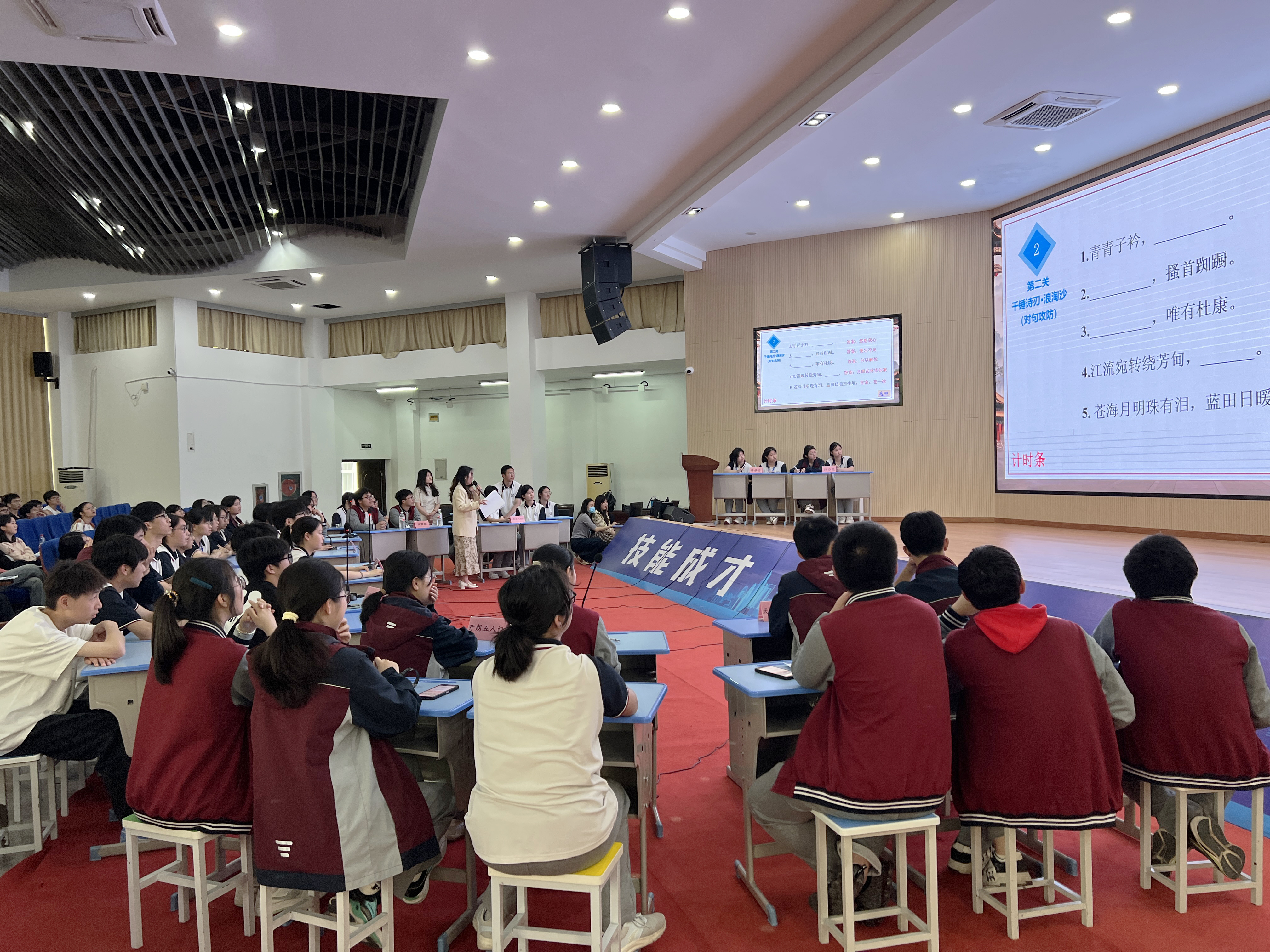 4月17日下午,一場詩詞的巔峰對決在校園內震撼開啟,詩詞大會如約而至。本次大會分為個人詩藝擂臺與團隊詩戰風云兩大板塊,全方位激活詩詞的獨特魅力與深邃內涵。