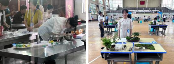 學校選手正在進行創(chuàng)意餃子(左)及微景觀設計(右)賽項