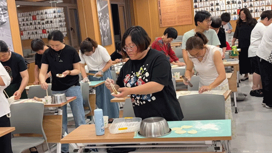 走進(jìn)雙瀆社區(qū)文化禮堂,空氣中彌漫著面粉的清香。來自柯橋區(qū)區(qū)委黨校高級(jí)面點(diǎn)師陳志華老師手持面團(tuán)現(xiàn)場(chǎng)示范:“和面講究‘三凈’——手凈、盆凈、水凈,就像做人做事要干干凈凈。”學(xué)員們制作的“清風(fēng)包子”特意保留18道勻稱褶紋,寓意“緊扎紀(jì)律之繩”“方正花卷”層層分明,象征“公私分明不越界……”學(xué)員們系著圍裙認(rèn)真觀摩,不時(shí)用手機(jī)記錄關(guān)鍵步驟。實(shí)操環(huán)節(jié)中,學(xué)員們略顯生疏的動(dòng)作引得笑聲不斷:有人把包子捏成了“開口笑”,有人包出了元寶狀的創(chuàng)意餃子,當(dāng)?shù)谝换\熱氣騰騰的花卷出爐時(shí),現(xiàn)場(chǎng)響起了熱烈的掌聲。“以前買現(xiàn)成的總覺得差點(diǎn)味道,現(xiàn)在掌握了發(fā)面配比和造型技巧,周末能給孫子露一手了。”56歲的張阿姨捧著自制的大肉包子笑得合不攏嘴。