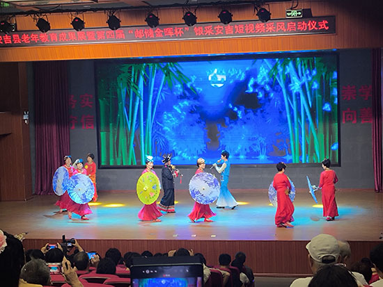 5月20日,在“安吉縣老年教育成果展暨第四屆‘郵儲金輝杯’銀采安吉短視頻”啟動儀式現(xiàn)場,一曲悠揚的《月光下的鳳尾竹》驚艷全場。這支由安吉社區(qū)教育學(xué)院天荒坪分院葫蘆絲班學(xué)員自編自導(dǎo)自演的舞蹈,不僅展現(xiàn)了獨特的藝術(shù)魅力,更詮釋了“銀發(fā)”學(xué)員們?yōu)榧w榮譽(yù)全力以赴的動人精神。?