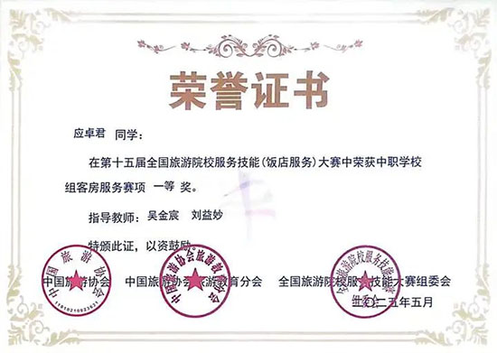 客房服務賽項一等獎(第2名)