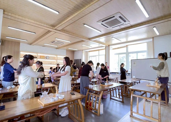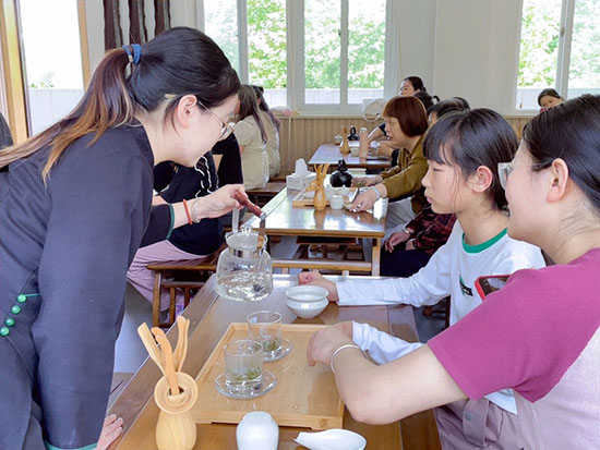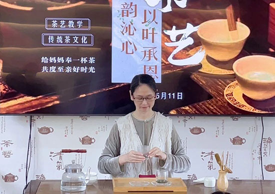 “從來茶倒七分滿,留下三分是人情”,管冬梅首先向參與者介紹了茶的歷史、茶葉品類、茶具布置、沖泡技巧和茶道禮儀,讓大家對(duì)茶文化有了更深入的了解。隨后,她現(xiàn)場(chǎng)演示了茶藝流程,優(yōu)雅的動(dòng)作、細(xì)致的講解,為大家?guī)砹艘粓?chǎng)沉浸式的茶文化體驗(yàn)。