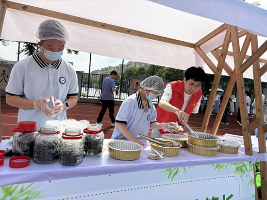 安吉學院的兩位志愿者老師主要在食品攤位前負責場地的環(huán)境衛(wèi)生和“小攤主”的照看工作。兩位“小攤主”互幫互助,一位裝盒封蓋,一位打包系結(jié),配合默契。有時候,裝盒的那位“小攤主”說話少了,我們的志愿者老師就會引導他和來賓進行互動交流,盡管小伙子非常害羞,但還是非常主動地參與進來。這一場體驗,對我們的志愿服務(wù)工作有一個新的啟發(fā),安吉學院志愿服務(wù)工作隊不僅要繼續(xù)深入?yún)⑴c社會公益服務(wù)工作,更要積極參與社會特殊全體的照拂工作,以己之身,奉獻社會!(周斌斌)