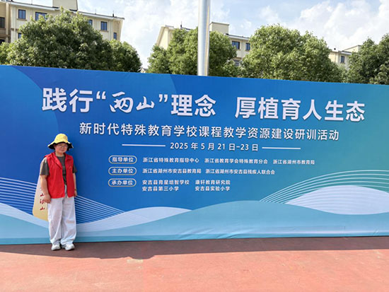 5月21日至23日,安吉縣育星培智學校與其他三所學校聯(lián)合承辦“踐行‘兩山’理念 厚植育人生態(tài)——新時代特殊教育學校課程教學資源建設(shè)研訓活動”。在22日上午的主題活動中,育星培智學校的老師和同學們共同“出攤”,展示由老師指導、學生完成的手工藝品和安吉特產(chǎn)。龔天萍老師帶領(lǐng)學校青年教師周斌斌赴育興培智學校參與當天上午活動的志愿服務(wù)工作。