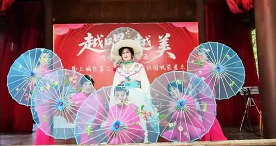 日常生活中,鶯歌年華越劇隊更是公益舞臺上的常客。在養老院里,老人們圍坐在一起,隨著《梁祝》的旋律輕輕哼唱,隊員們婉轉的唱腔為老人們帶來心靈的慰藉;在社區廣場上,孩子們瞪著好奇的大眼睛,被精美的越劇扮相和動人故事深深吸引。團隊中多數成員雖已年過半百,卻依然懷揣對越劇的熾熱熱愛,發揮余熱,用實際行動傳承中華優秀傳統文化,讓越劇之花在社區綻放得更加絢爛。(望江街道社區學校 楊晨、王麗)